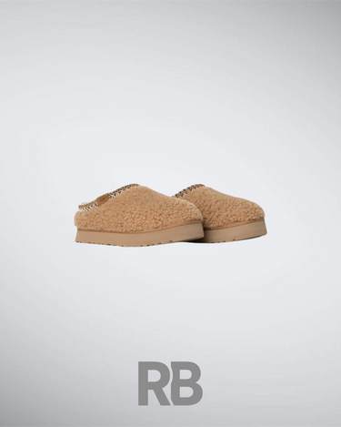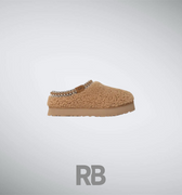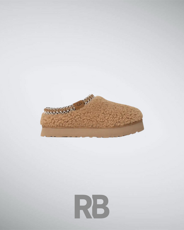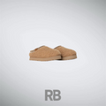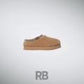 The UGG Maxi Curly Tazz in Chestnut features a curly sheepskin upper, plush UGGplusha lining, and a 2-inch EVA platform sole for style and comfort. A braided stitch detail adds a trendy touch, making it perfect for cozy, casual wear.