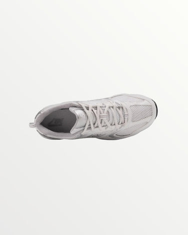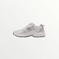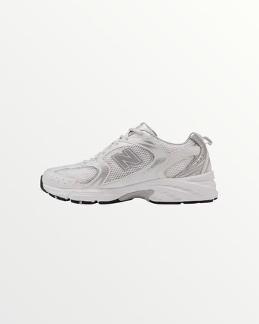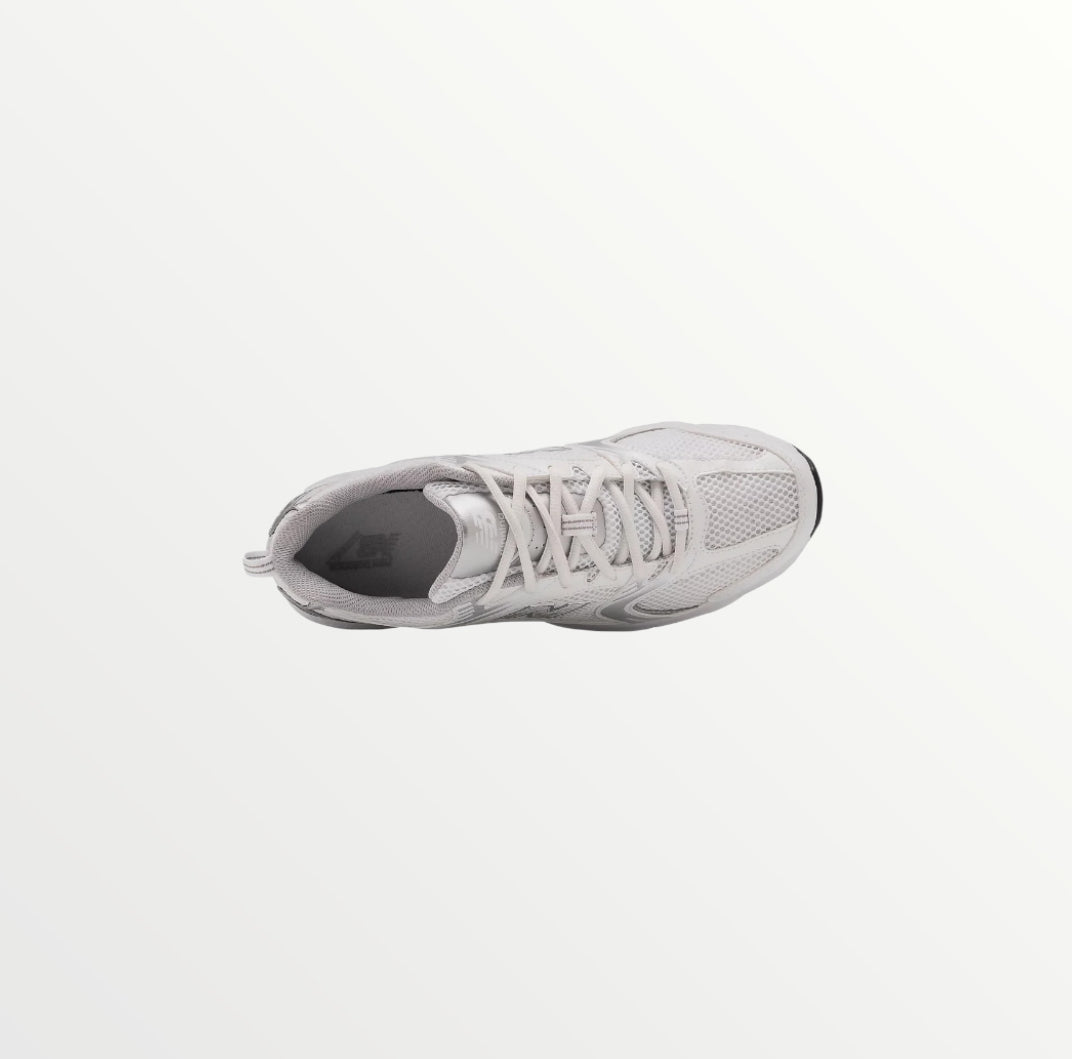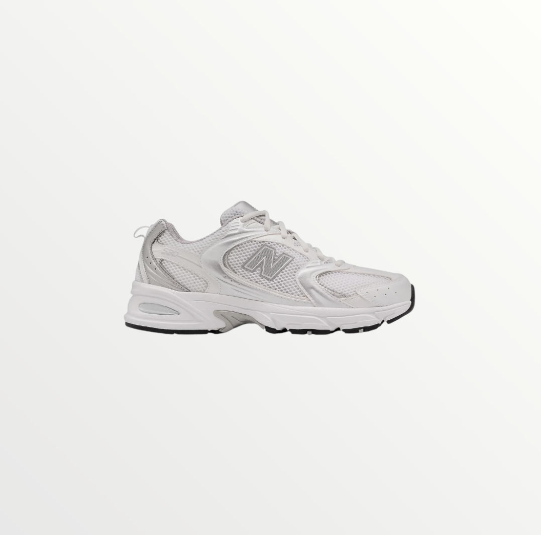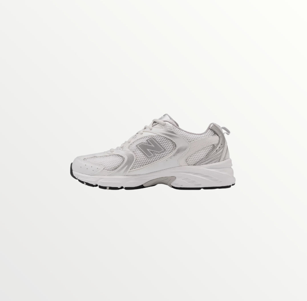 The New Balance White Silver Metallic features a white mesh and leather upper with sleek silver metallic accents on the logo, heel tab, and midsole. It offers comfort with New Balance’s signature cushioning and a durable rubber outsole. Stylish and versatile, this sneaker blends everyday wearability with a touch of shine.
