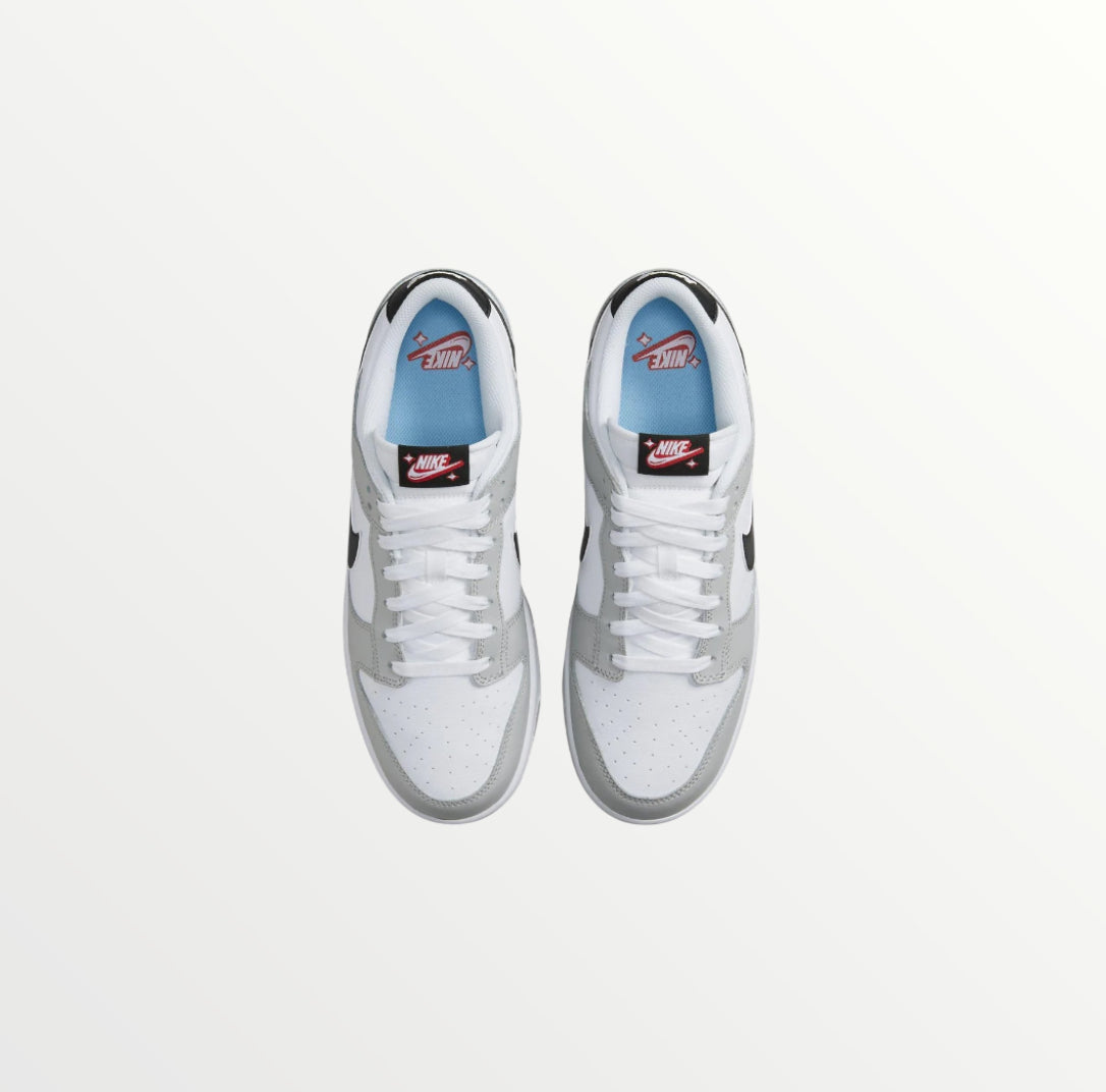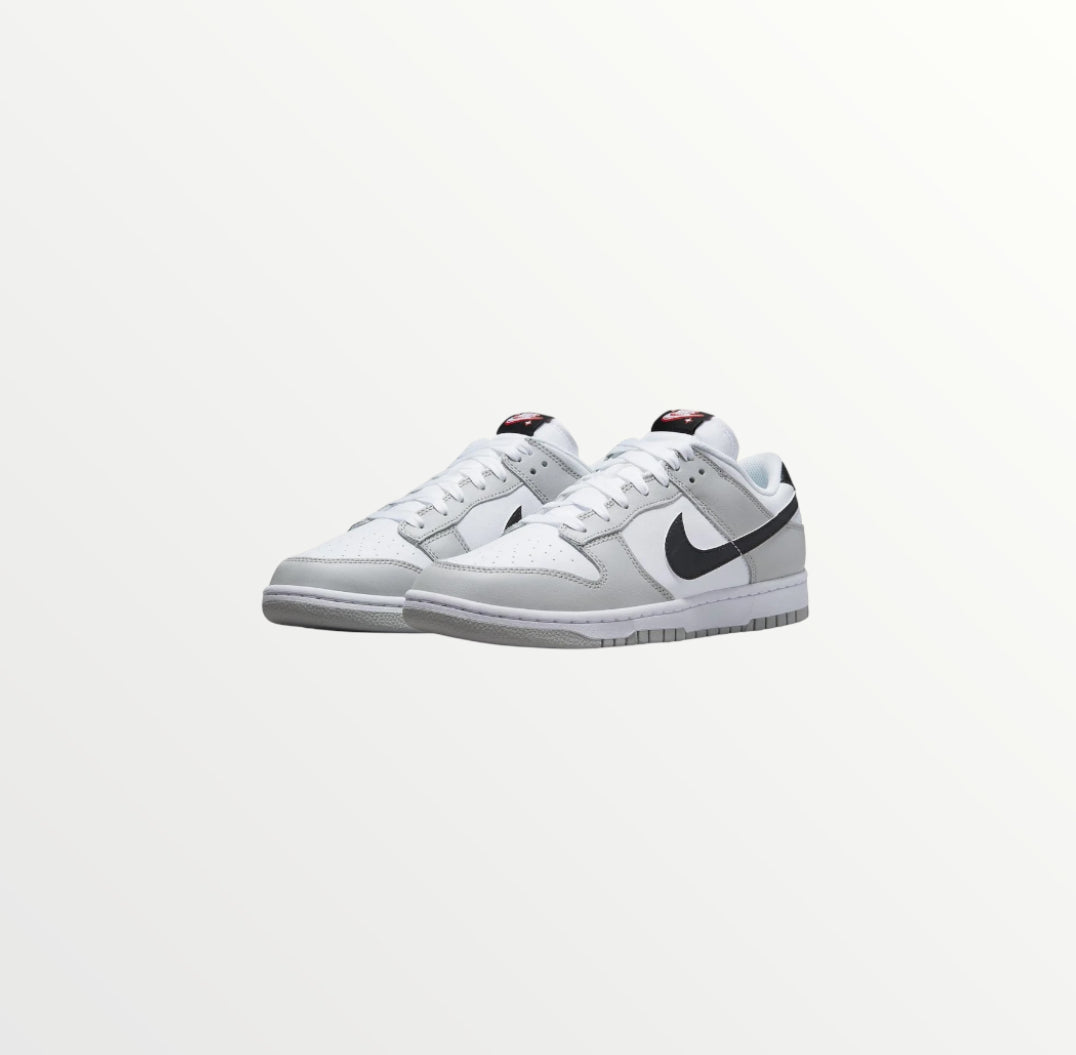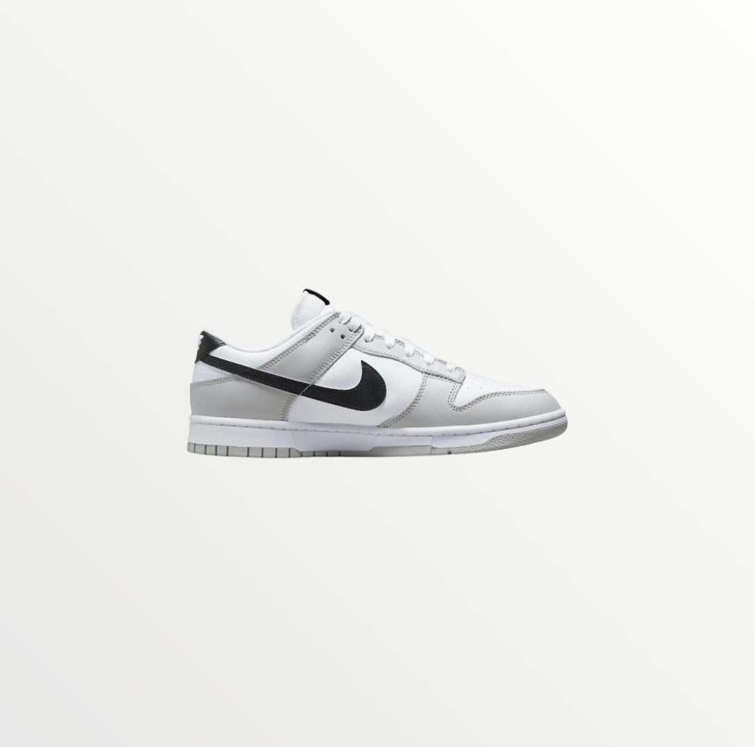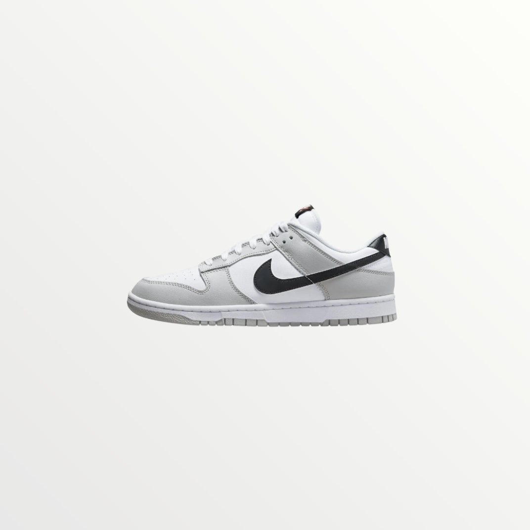 The Nike Dunk Low SE Lottery Pack - Grey Fog is a special edition sneaker featuring a white and grey leather upper with a black Swoosh. The standout detail is the scratch-off Swoosh, which reveals a hidden design underneath. With a white midsole and grey outsole, it blends classic style with an interactive element. Released on August 31, 2022, it’s a unique pick for sneaker fans.