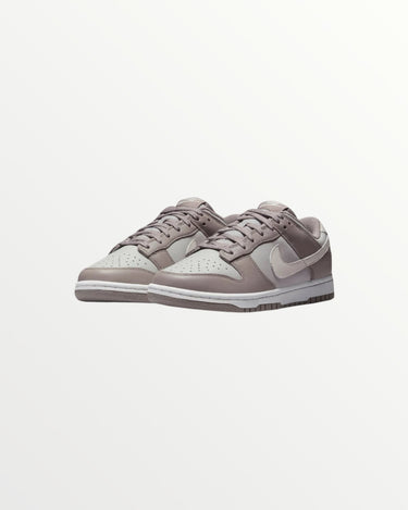 The Nike Dunk Low “Moon Fossil a women’s sneaker with a premium leather upper in a mix of light and dark grey tones. It features a classic Dunk design with stylish overlays for a sleek, modern look.