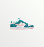 The Nike Dunk Low Washed Teal Snakeskin is a striking sneaker that blends bold design with premium materials. Featuring a unique washed teal colorway, the shoe is enhanced with a snakeskin-textured leather overlay for a luxurious and edgy look. The low-top silhouette provides a comfortable and flexible fit, while the durable rubber outsole ensures reliable traction. The sneaker’s design is completed with classic Nike branding and an eye-catching combination of textures, making it a standout addition to any collection. Perfect for sneaker enthusiasts looking for both style and statement, the Dunk Low Washed Teal Snakeskin offers a fresh