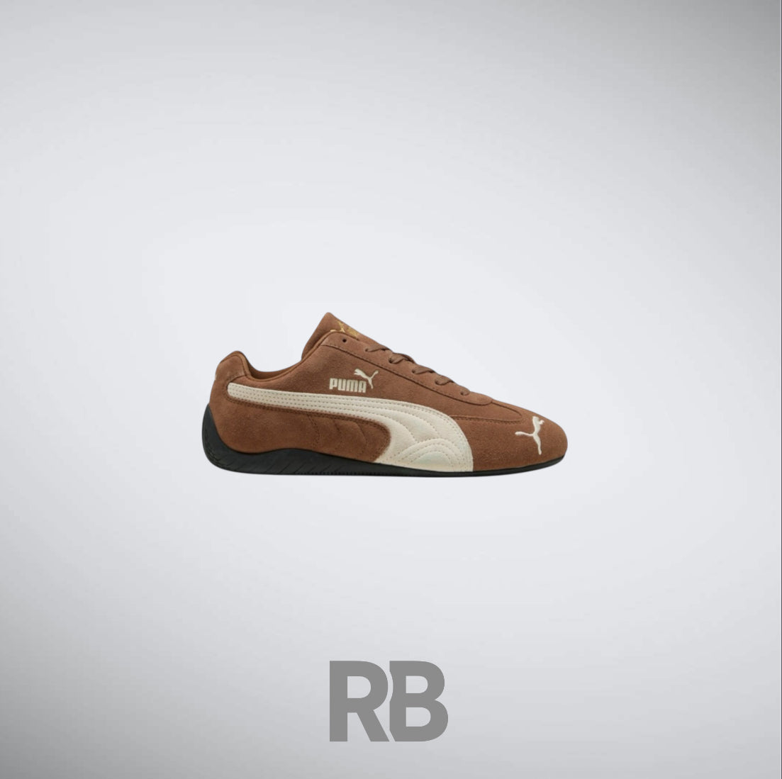 The Puma Speedcat OG “Haute Coffee/Frosted Ivory” (Gold Tongue Logo) is a refined reissue of Puma’s iconic motorsport silhouette, blending vintage racing aesthetics with contemporary streetwear appeal