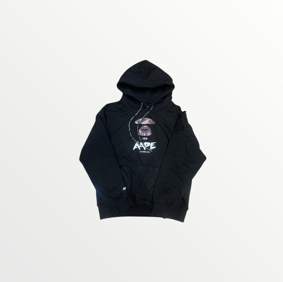 The AAPE Black Hoodie is a stylish streetwear piece from AAPE by A Bathing Ape, featuring a comfortable fit, high-quality cotton blend, and signature branding like the AAPE Moon Face logo, “AAPE NOW” text, or camo accents. Some designs include reflective details for a bold look.