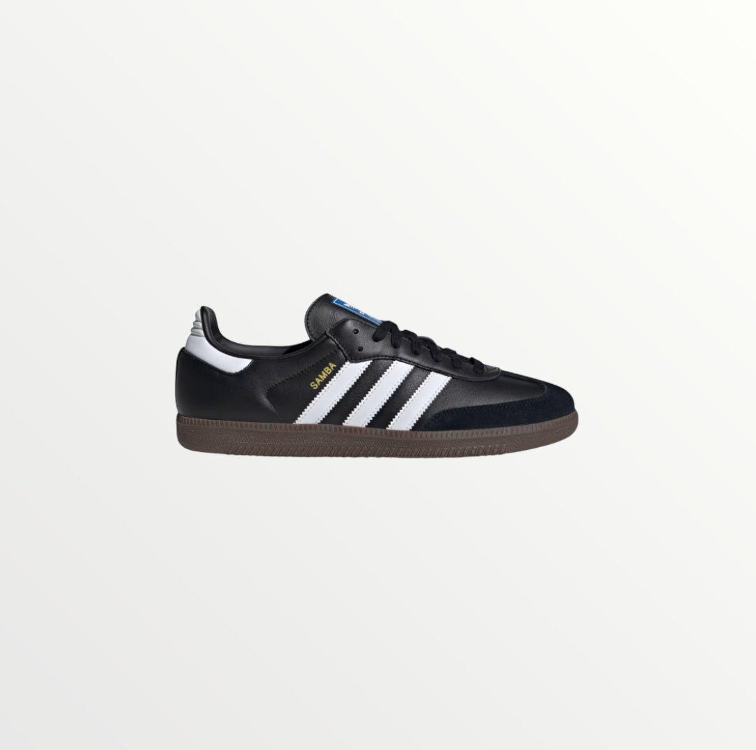 a classic sneaker with a sleek black leather upper, featuring the iconic three stripes. It's originally designed for soccer but has become a streetwear staple, known for its comfort and retro style. Perfect for elevating any outfit!