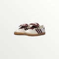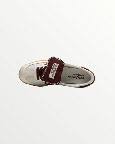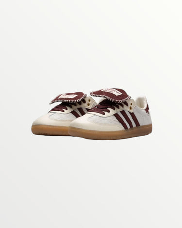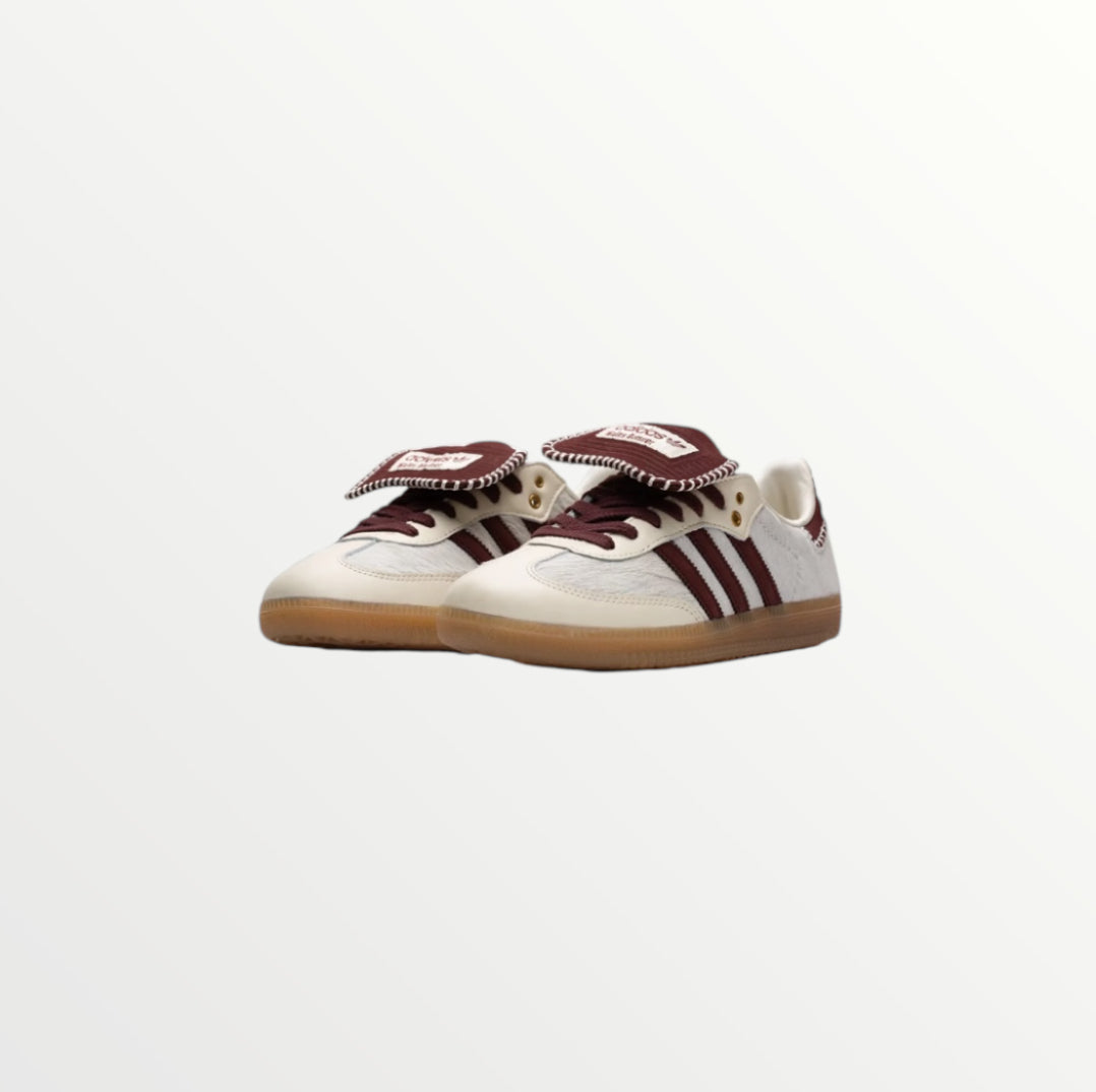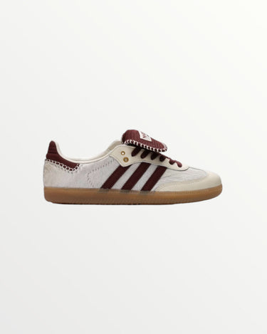 The Adidas x Wales Bonner Samba Pony Tonal is a luxurious take on the classic Adidas Samba silhouette, featuring a premium pony hair upper and a tonal, monochromatic design. It retains the iconic three-stripe branding and gum sole, while a gold foil Wales Bonner logo adds a distinctive touch, merging sportswear with high fashion for a sleek, exclusive look.