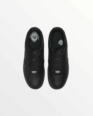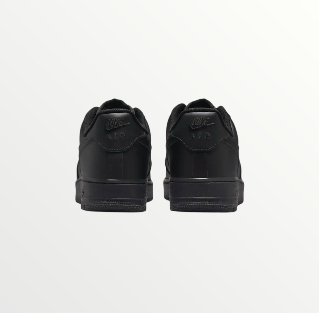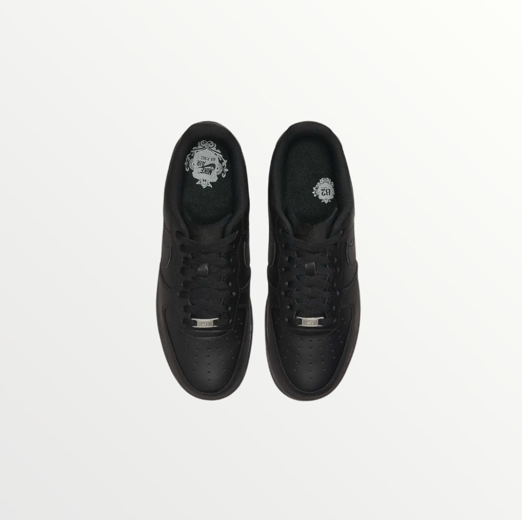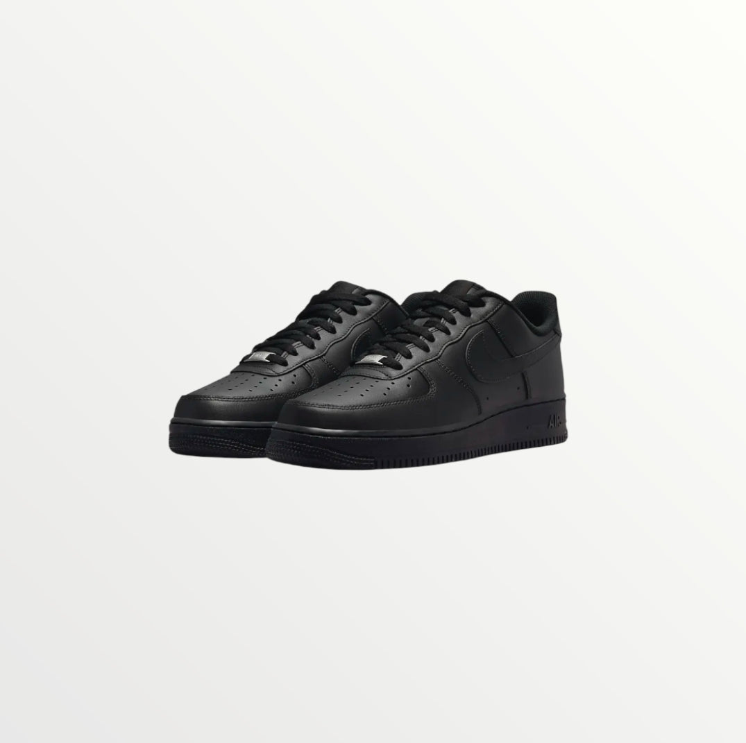 The Nike Air Force 1 Black is a classic sneaker with a sleek all-black leather upper and a durable rubber sole for traction. It features a perforated toe box for breathability and subtle branding with the Nike Swoosh and “AIR” insignia. Its timeless, monochromatic design makes it a versatile choice for any occasion.