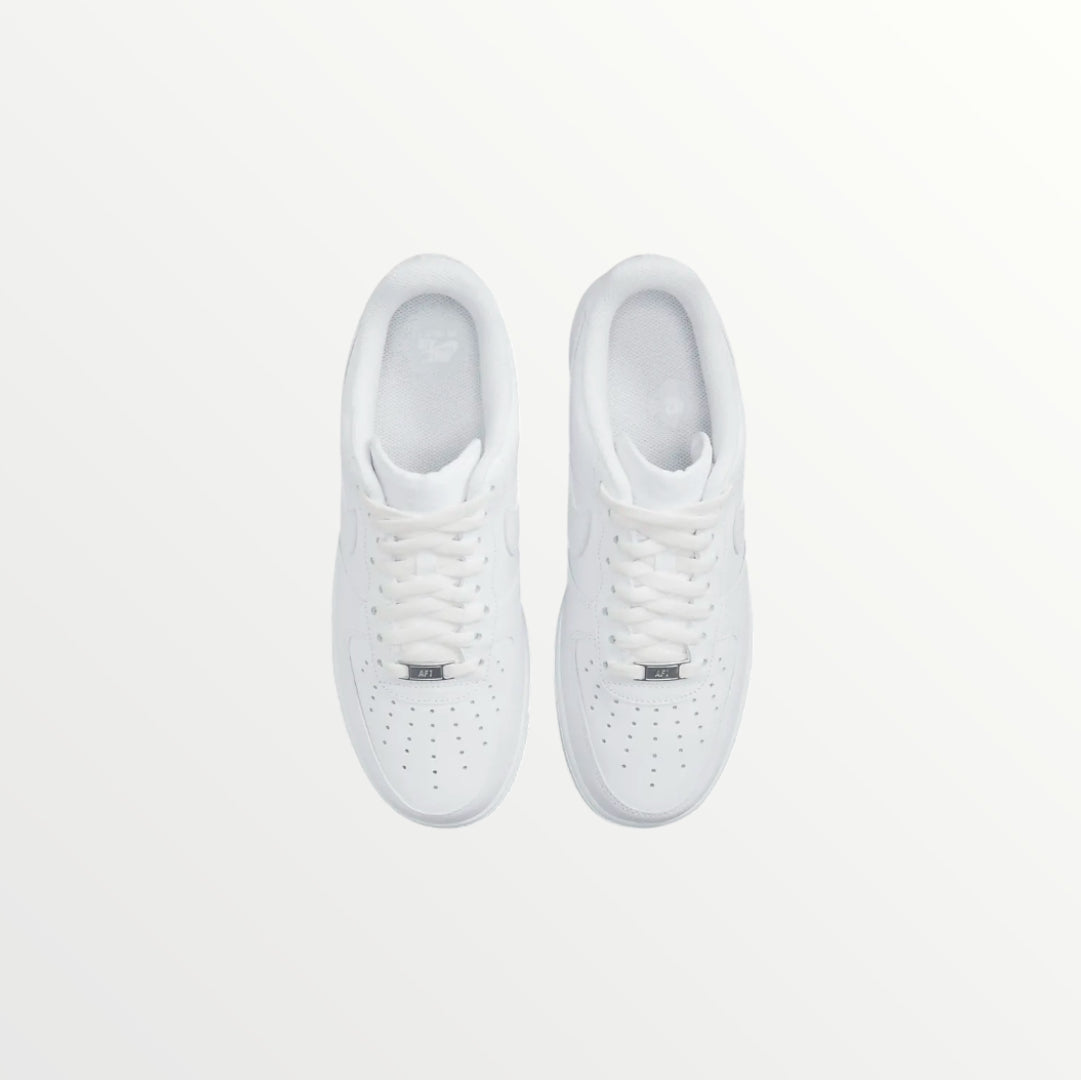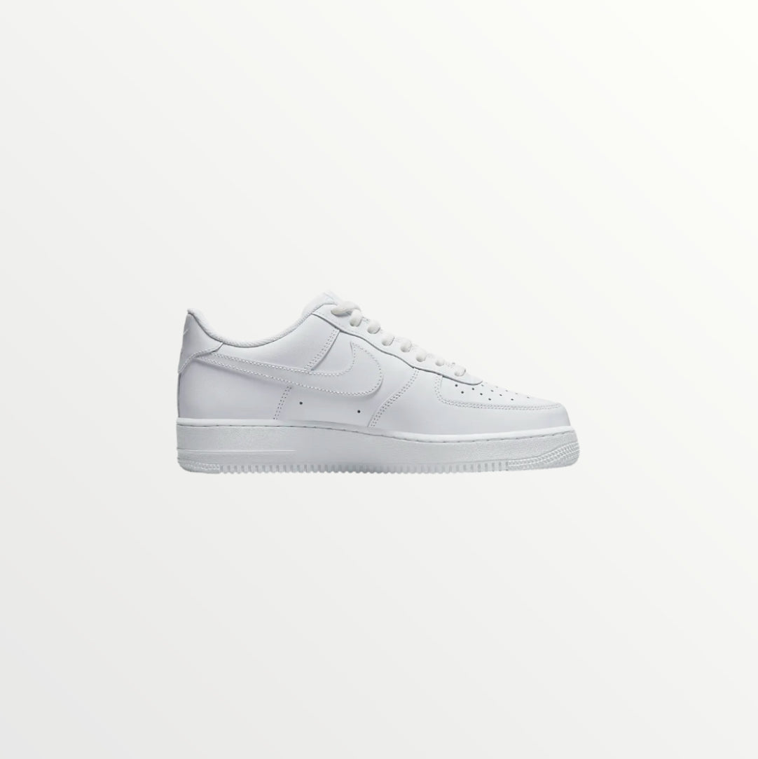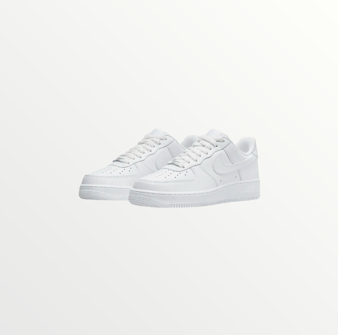 The Nike Air Force 1 White is a classic, durable sneaker with a premium leather upper, Air cushioning for comfort, and a rubber outsole for traction. Its clean design and versatility make it perfect for everyday wear.